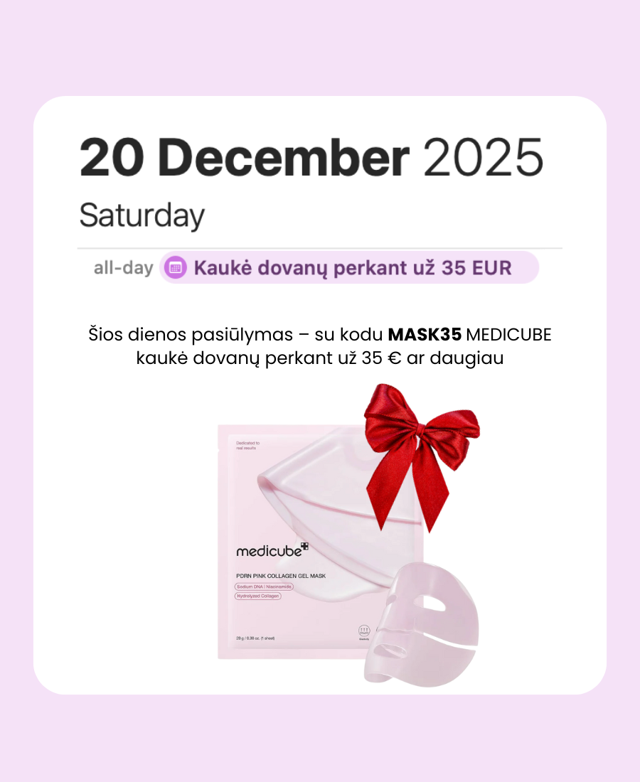 Šios dienos pasiūlymas – su kodu MASK35 MEDICUBE kaukė dovanų perkant už 35 € ar daugiau.